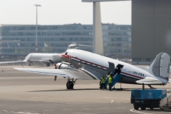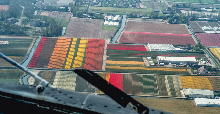 Vol en DC 3 au-dessus des champs de tulipes